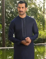 JUNAID JAMSHED MIDNIGHT BLUE BLENDED KAMEEZ SHALWAR
